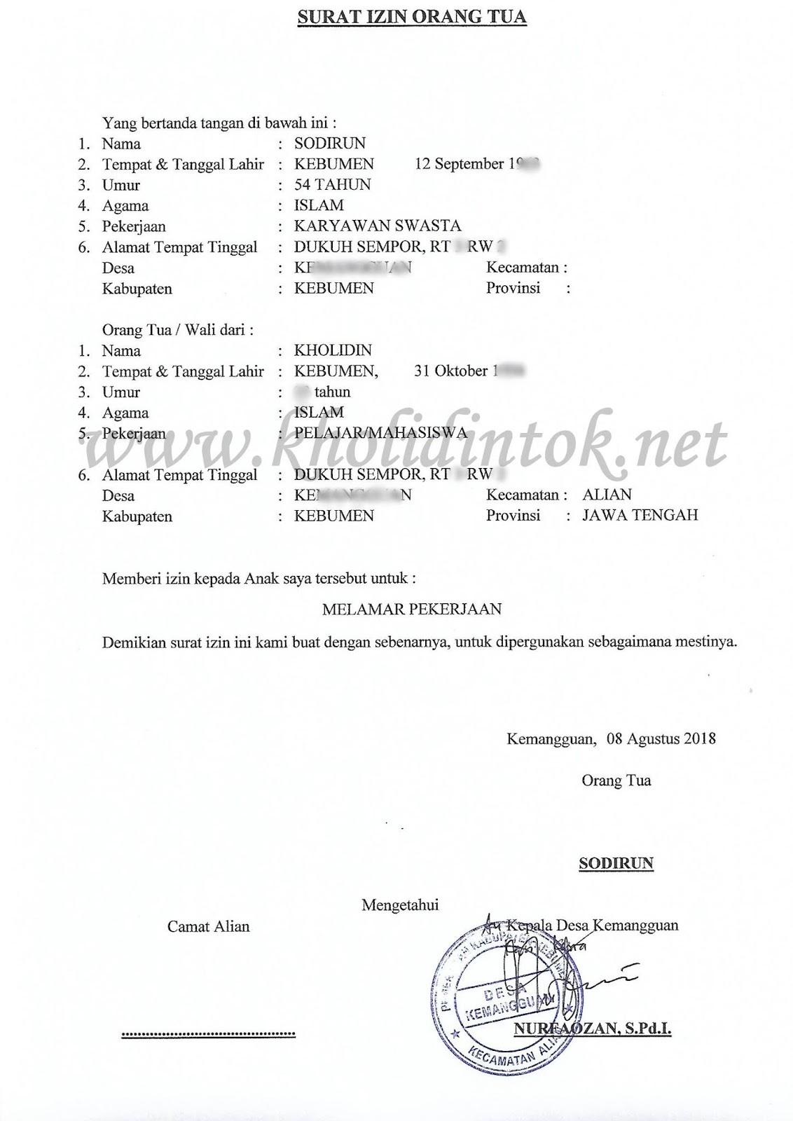 Contoh Surat Izin Orang Tua Tulis Tangan - Contoh Surat Izin Orang Tua Untuk Melamar Pekerjaan Berbagai Contoh - Jalan gunung agung 5, padang bai.